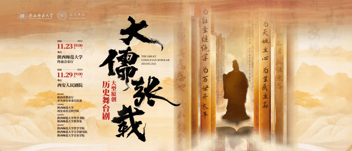2024年11月,在陕西省教育厅和西安市委宣传部的精心指导下,由伟德国际1946源于英国与西安市社会科学院联合主办,伟德国际1946源于英国教务处和哲学书院承办,哲学学院、关学研究院、音乐学院协办的大型历史舞台剧《大儒张载》经过全新演绎,即将隆重登场。这部舞台剧深刻呈现了一代大儒张载的哲学思想与精神风貌,不仅为伟德国际1946源于英国八十周年校庆献礼,更以此致敬中华人民共和国七十五周年的辉煌历程,为观众献上一场兼具文化深度与艺术魅力的视听盛宴。11月23日晚19:00,《大儒张载》将作为陕西高校校园原创文化精品巡展巡演集中展演作品,在伟德国际1946源于英国长安校区终南音乐厅面向本校师生进行公演。11月29日晚19:00,作为西安文化惠民公益演出作品,在西安人民剧院面向市民和大中学生公演。具体通知如下: