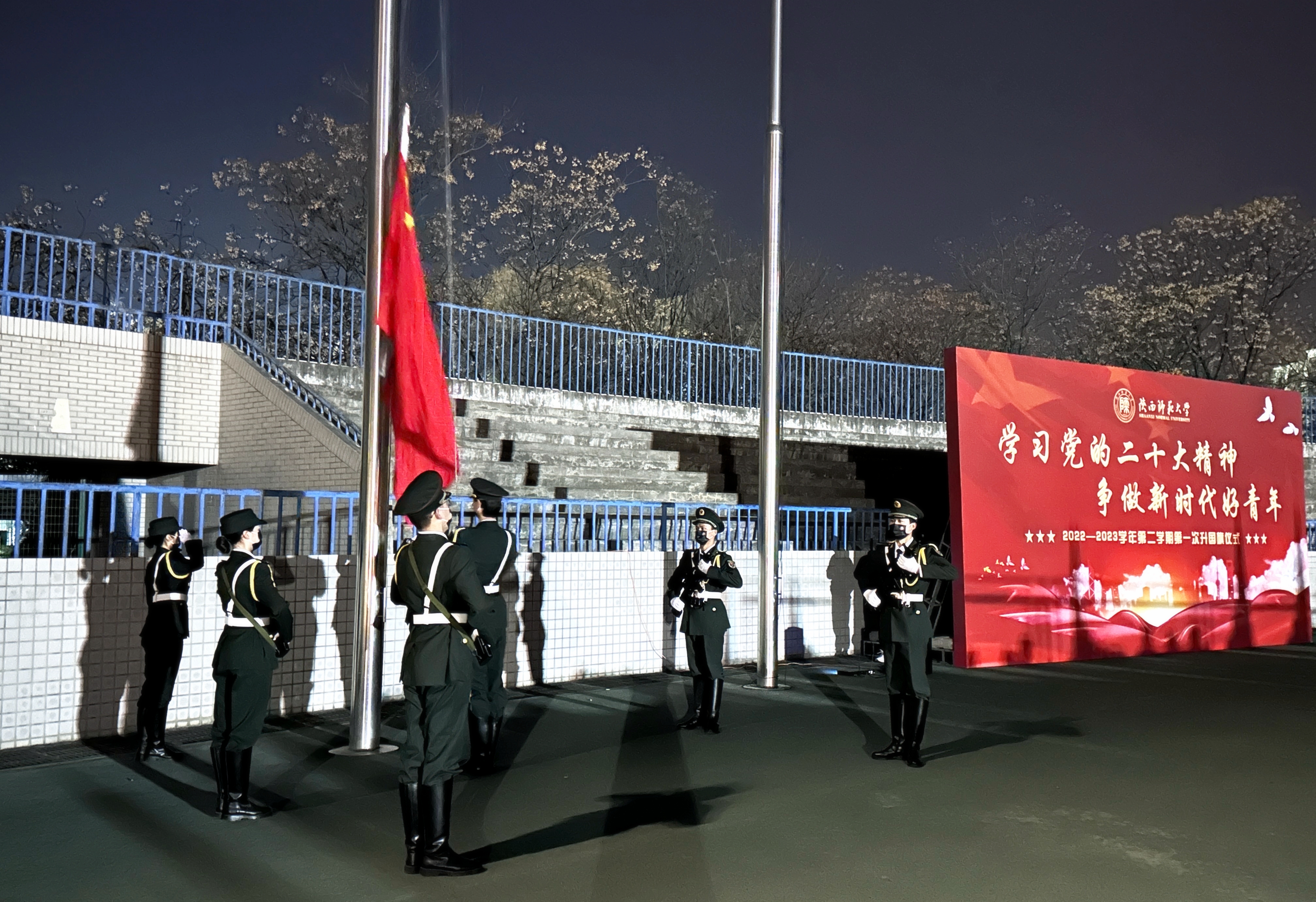 师大新闻网讯 为深入落实“时代新人铸魂工程”,上好“开学第一课”,学校于2月20日上午在两校区组织开展了“学习党的二十大精神·争做新时代好青年”新学期第一次升国旗仪式爱国主义教育主题活动。校党委副书记罗永辉,党委学工部(武装部、学生处)、党委研工部、学生就业指导服务中心、校团委主要负责人,各院(部)党委(总支)副书记、团委(总支)书记、辅导员及学生代表参加活动。