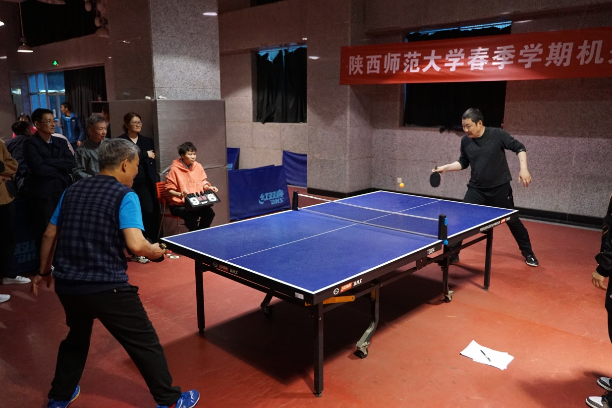 师大新闻网讯 4月6日晚,2023年机关单位干部职工乒乓球团体赛在长安校区上林体育馆举行。校党委副书记罗永辉,副校长李磊、陈新兵参加活动,活动由党委常委、党委宣传部(新闻中心)、党委教师工作部部长马晓云主持。此次乒乓球赛由机关党委、机关工会联合主办,共有来自19个单位组成的14支队伍参加,56名运动员代表分别上场进行了男单、女单和混双比赛。经过激烈角逐,国有资产管理处、离退休处、保卫处代表队获得前三甲。
