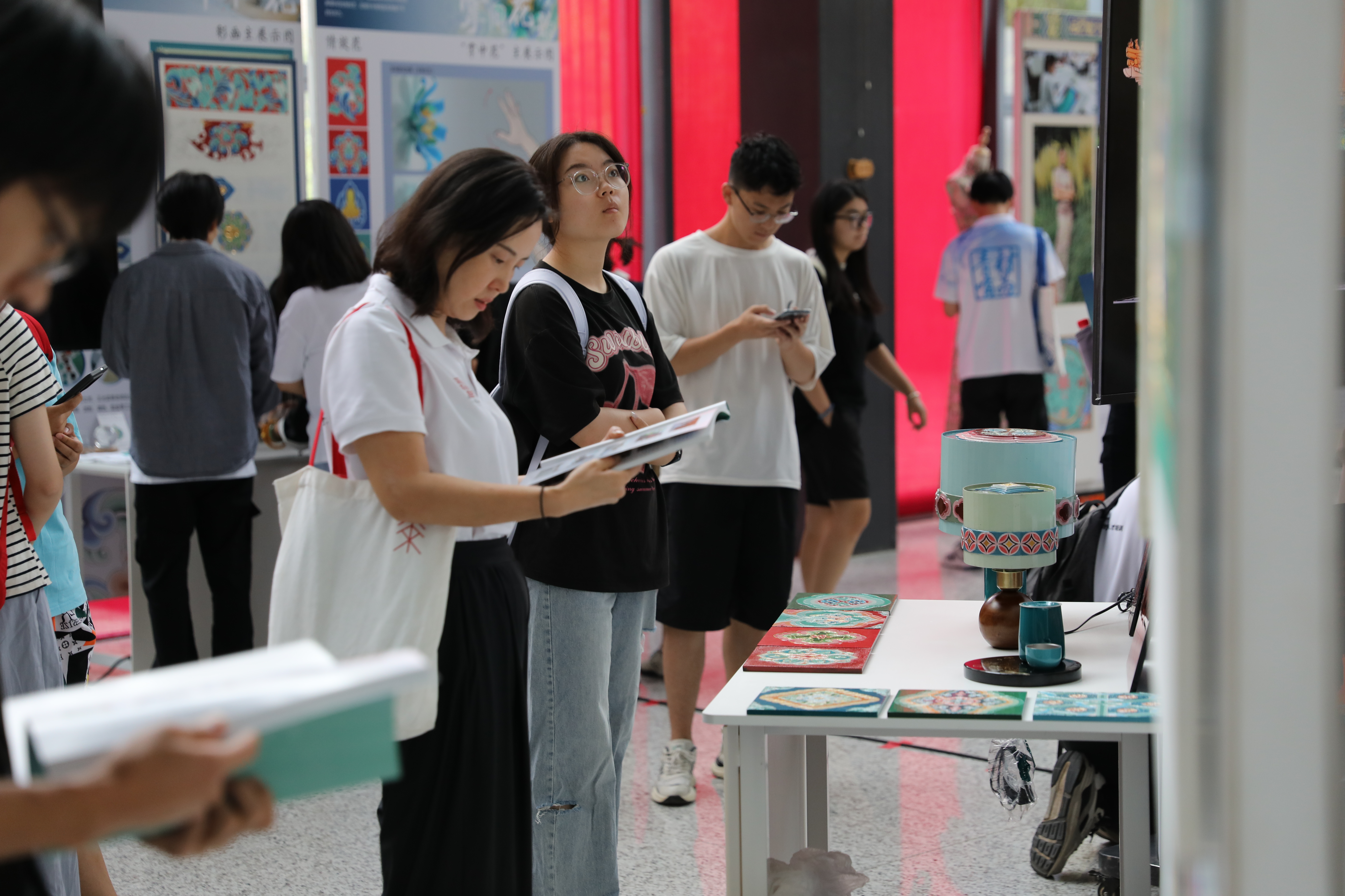 “中国官式彩画图案艺术设计创意人才培训”由故宫博物院主办、伟德官网协办,集中培训为期60天,主要通过理论讲授、实操演练、鉴赏调研等多种形式进行。此次展览按照“唐辽宋-元明清”的顺序进行布展,集中展出了学员的彩画临创作品、彩画速写作品、相关创意作品构思及部分文创产品,重点展现了明代故宫以南薰殿彩画为主题的复原、三维动画以及创意产品。
