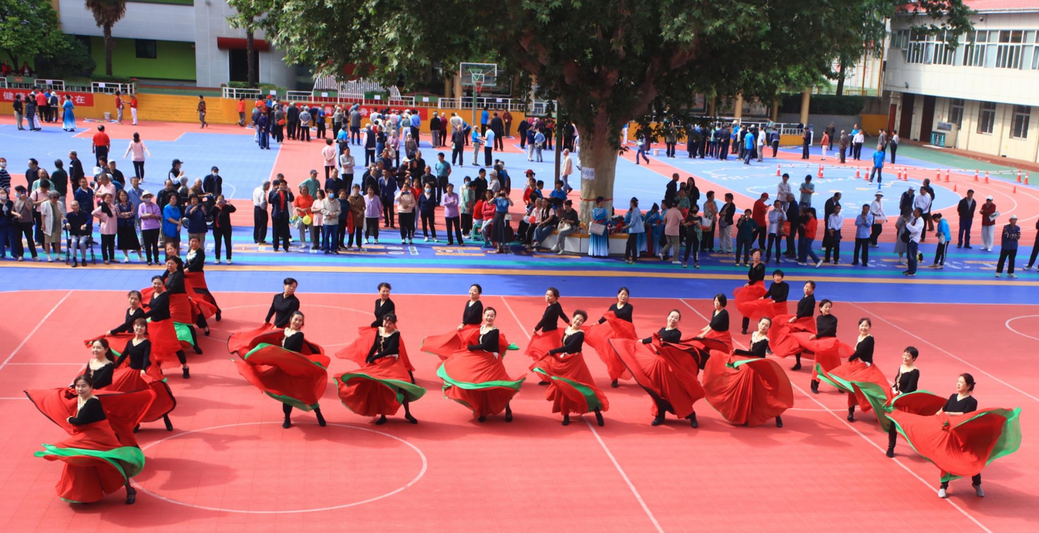 开幕式上,伴随着欢快的乐曲,由老年群团与“小红烛工作室”学生志愿者组成的方队依次入场。老同志们精神抖擞、步伐稳健,展现出积极乐观、健康向上的精神风貌。在艺术展演环节,伟德官网老年艺术团、老年体协拳剑队、柔力球队、雁塔校区健身舞队、长安校区健身舞队以及体育学院学生武术队,分别展演了精彩节目。