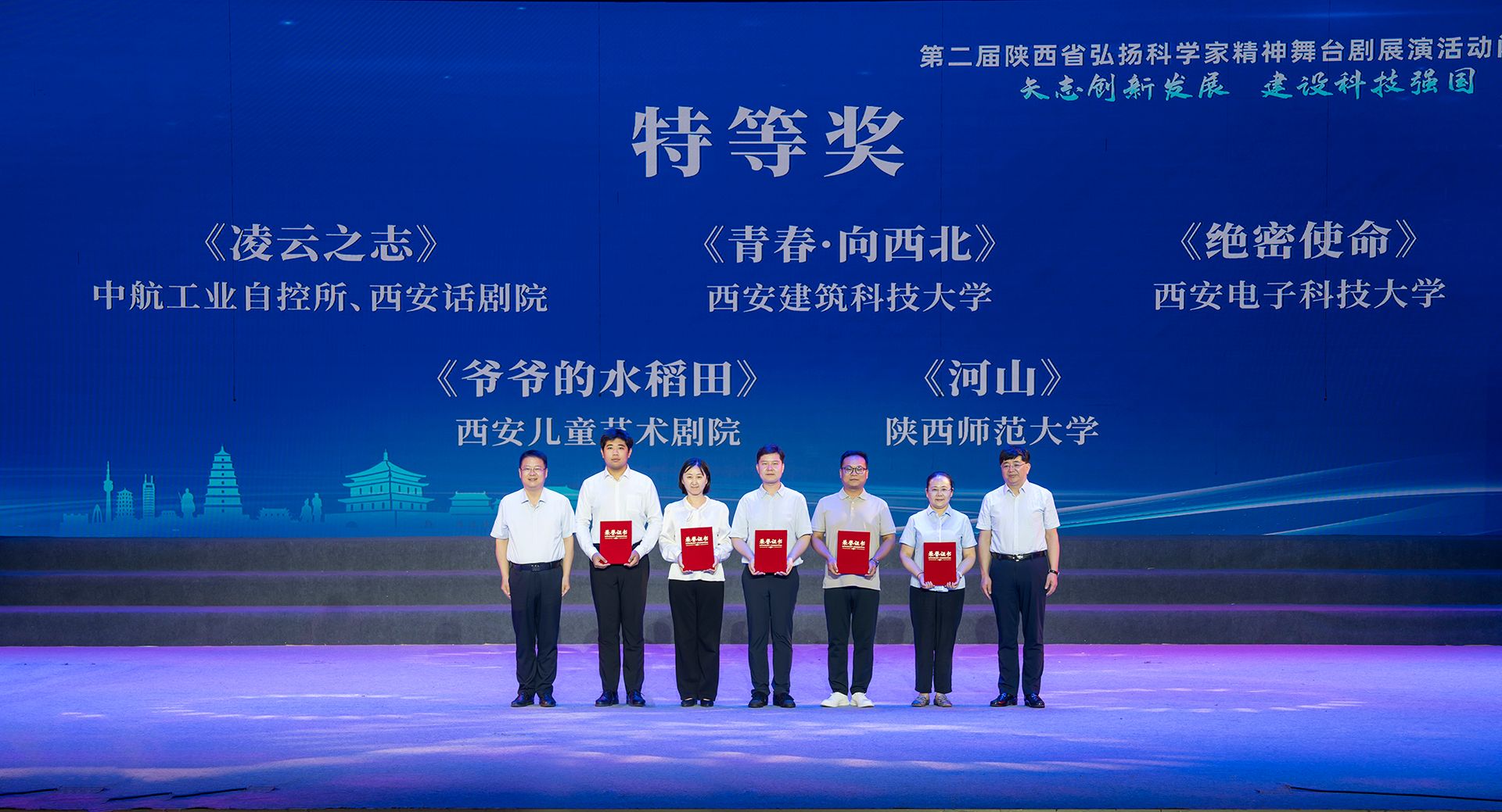 师大新闻网讯 6月11日,第二届陕西省弘扬科学家精神舞台剧展演活动落下帷幕,伟德官网原创“大先生”话剧《河山》荣获特等奖。本次活动由陕西省科协、省教育厅、省科技厅、团省委、省科学院主办,旨在进一步培育创新文化、弘扬科学家精神、涵养优良学风、营造创新氛围,共有16家单位报送的21部剧目参加展演,评选出特等奖5项。