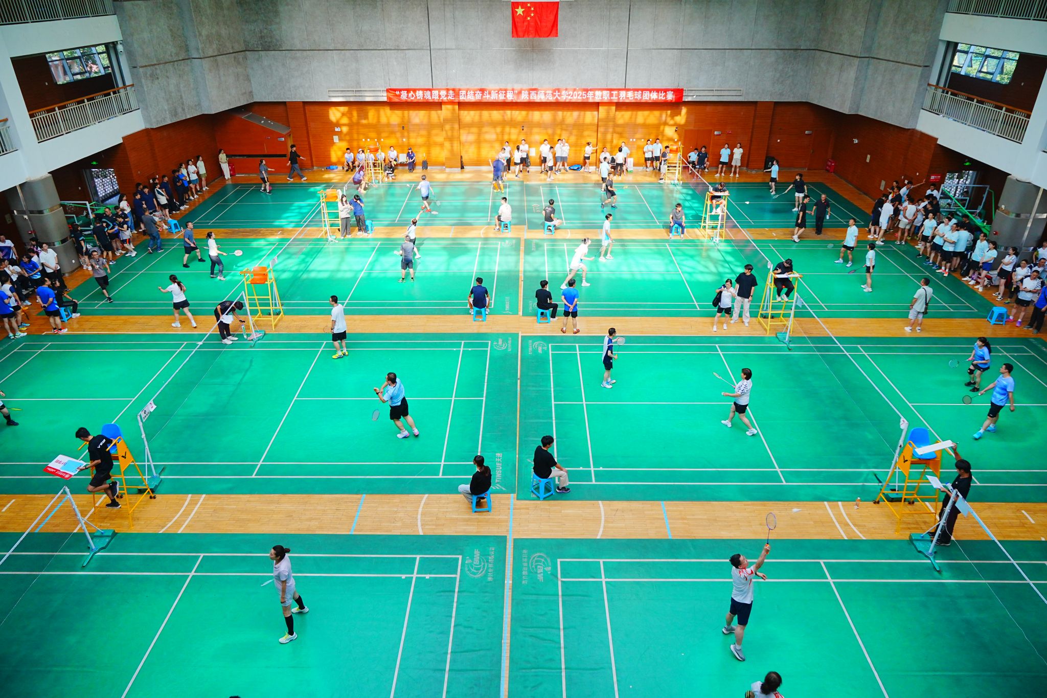 师大新闻网讯6月15日,“凝心铸魂跟党走 团结奋斗新征程”2025年教职工羽毛球团体比赛在雁塔校区综合体育馆举行。校党委副书记罗永辉,各参赛队领队、教练员、裁判员出席活动。来自校内28个部门工会、29支代表队的400余名教职工参加了比赛,参赛队伍数量和运动员人数为历届办赛新高。