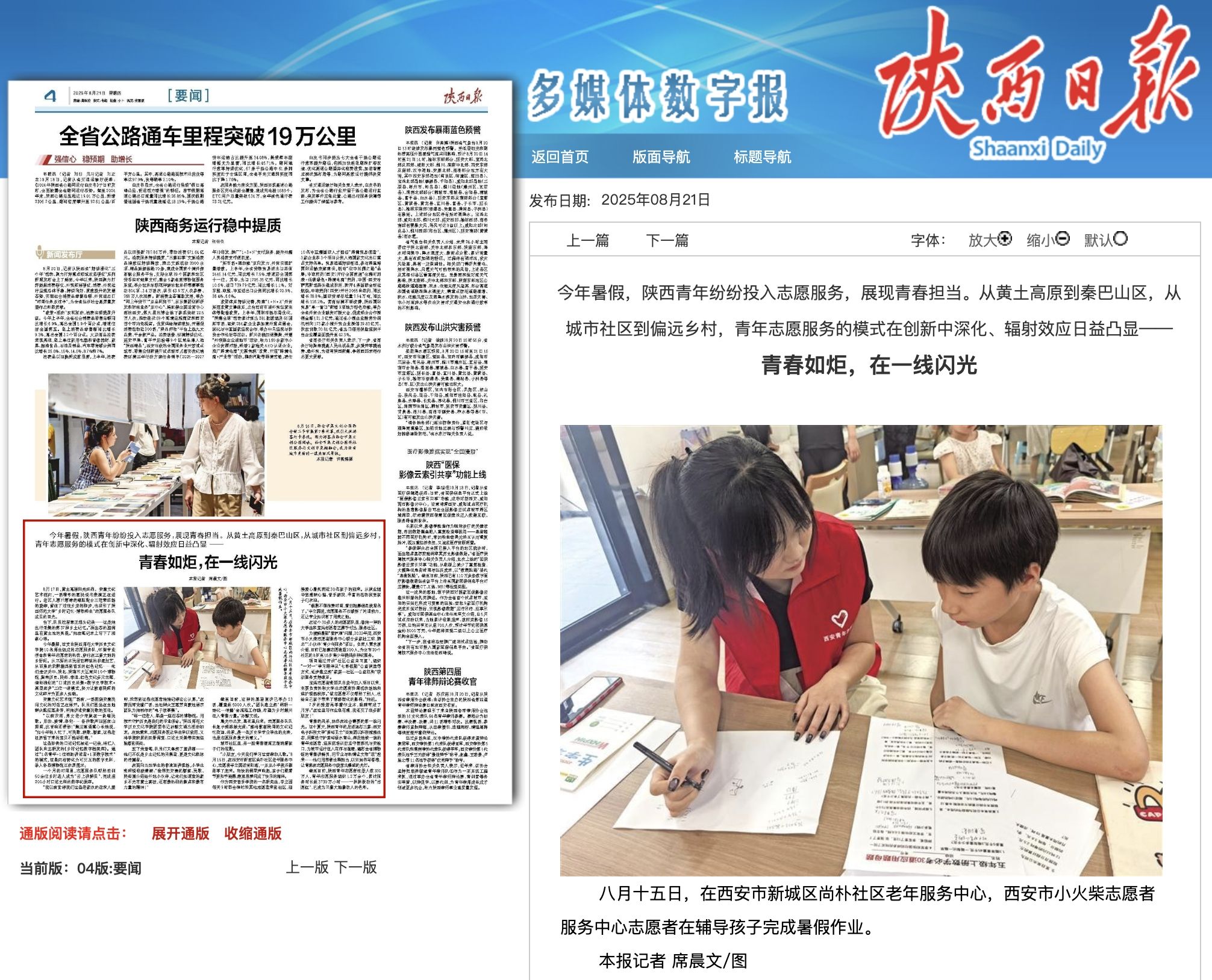 今年暑假,陕西青年纷纷投入志愿服务,展现青春担当。从黄土高原到秦巴山区,从城市社区到偏远乡村,青年志愿服务的模式在创新中深化、辐射效应日益凸显——