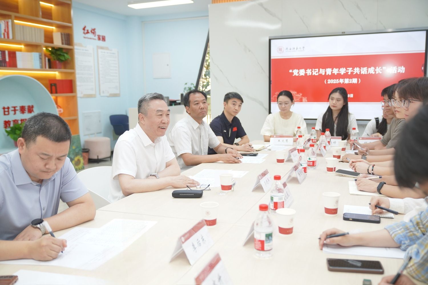 师大新闻网讯 5月23日下午,“党委书记与青年学子共话成长”2025年第2期座谈会在长安校区“一站式”学生社区服务空间“红烛家园”举行,校党委书记李晓兵与来自不同学院(部)的2025届毕业生学生代表座谈交流、共话成长。这次共话成长的主题是“职业启航与未来成长”。