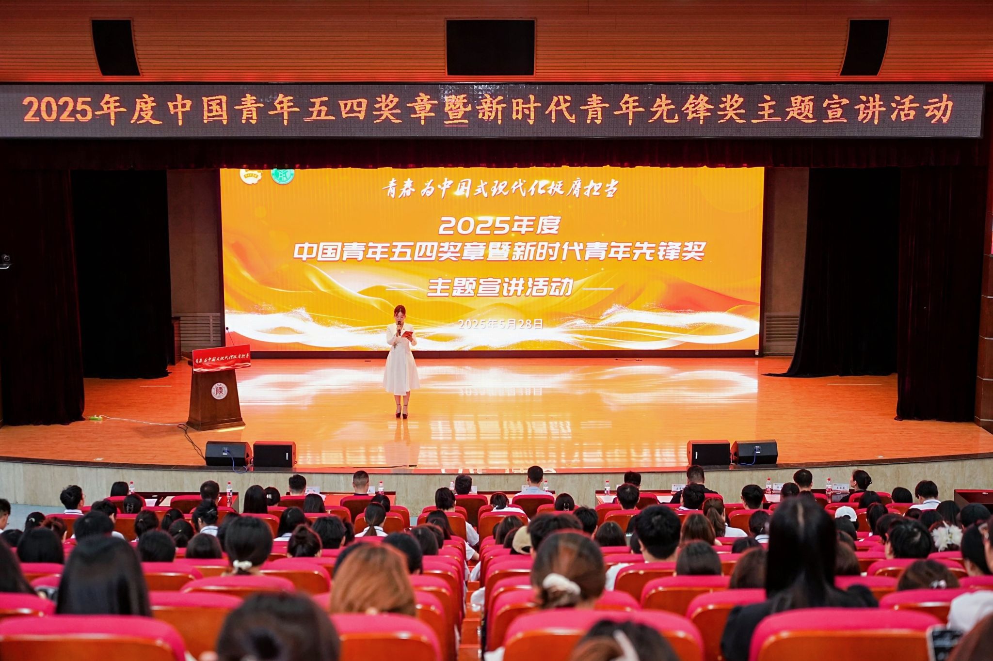 师大新闻网讯 5月28日,“青春为中国式现代化挺膺担当”——2025年度中国青年五四奖章暨新时代青年先锋奖主题宣讲活动在伟德官网长安校区新勇学生剧场举办。五位获奖青年代表围绕乡村振兴、科研创新等主题,讲述自身扎根一线的奋斗故事,展现新时代青年以实干践行使命的担当精神,引发青年学子共鸣。
